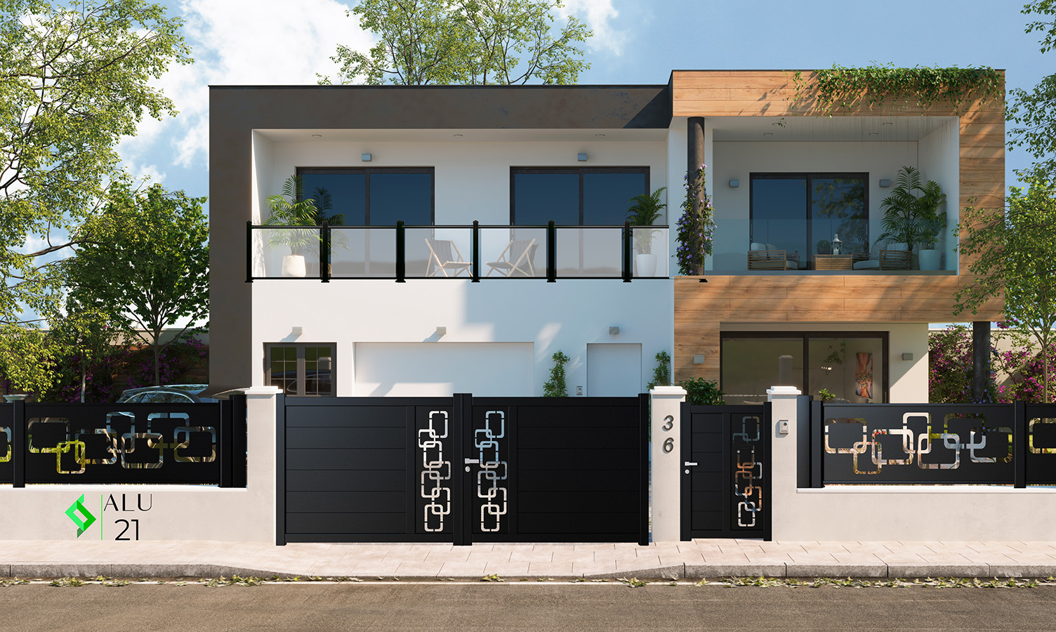 Apresentamos o modelo Saintes, parte da nossa gama exclusiva de vedações em alumínio PERFOLINE. Esta vedação destaca-se pelo seu design geométrico e perfurado, que não só confere un toque único e moderno à sua propriedade, mas também oferece a combinação perfeita de estética e privacidade. O padrão original do Saintes e diferente de tudo o que já viu, transformando a sua fachada numa verdadeira declaração de estilo.