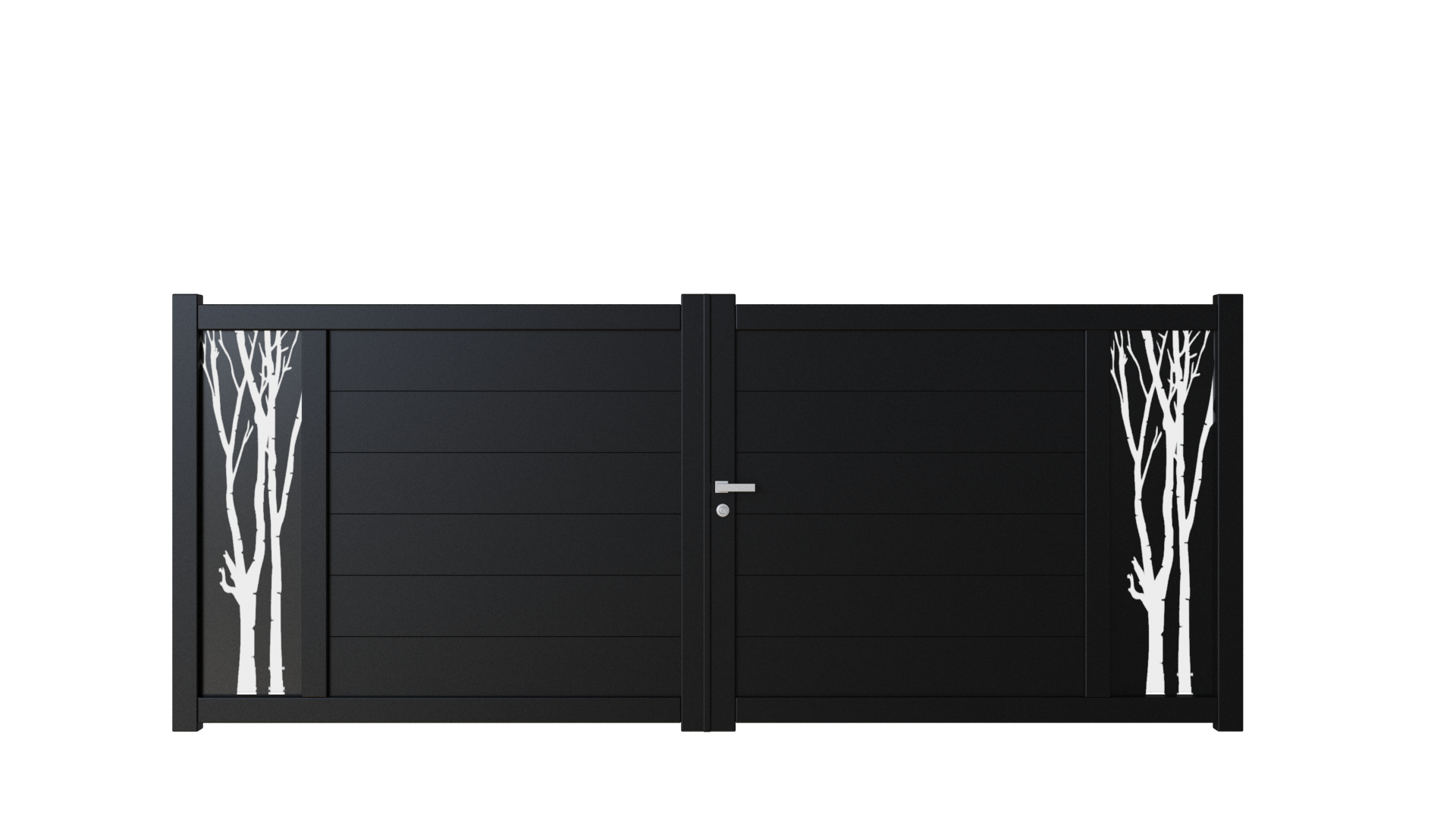 Reinvente o seu exterior com a gama GLASSLINE, composta por portões de batente em alumínio e vidro de segurança, que combinam modernidade e resistência. A impressão UV personalizável diretamente no vidro permite escolher o nível de privacidade desejado, sem perder a luminosidade natural.