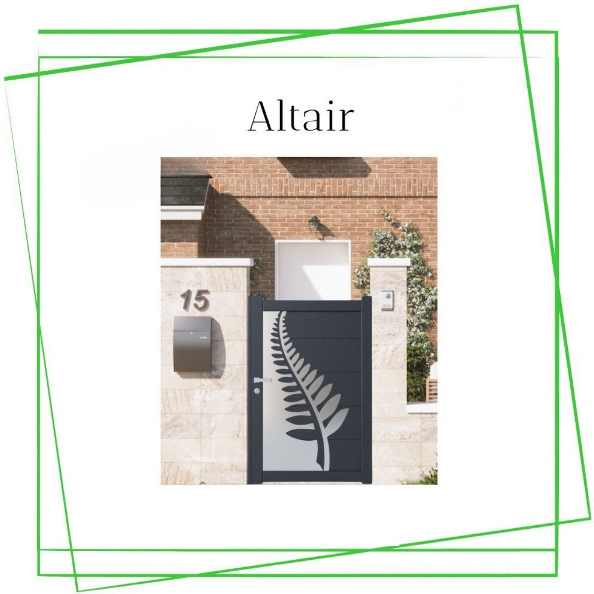 O portão é fabricado em duas partes: a folha e a batente de recepção correspondente que é fixada no pilar do lado da fechadura. Este elemento prático e estético, que integra a fechadura do portão, evitará que você precise cavar sua alvenaria para integrar a fechadura.
